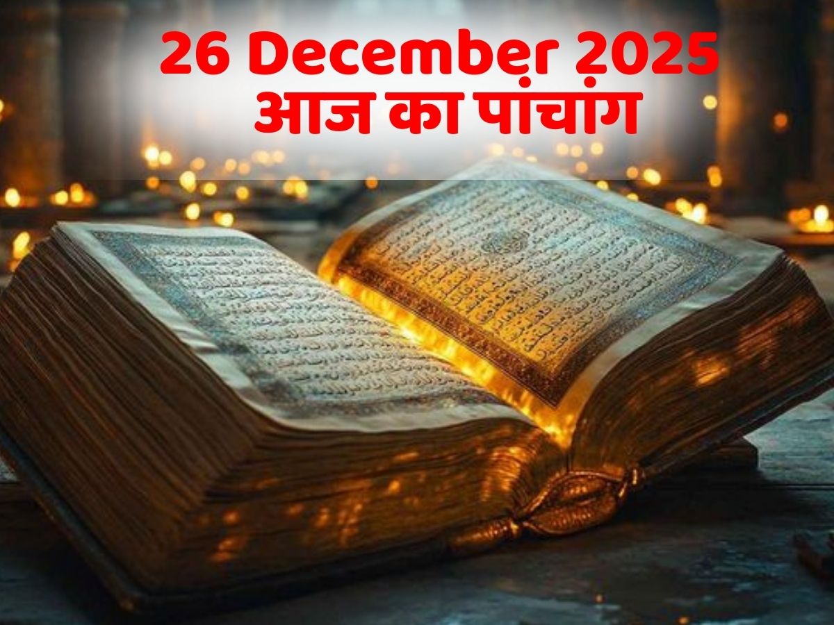 Aaj Ka Panchang 26 December 2025: आज 26 दिसंबर 2025, शुक्रवार का दिन हिंदू पंचांग के अनुसार आज पौष माह के शुक्ल पक्ष की षष्ठी तिथि है. जो दोपहर 1 बजकर 42 मिनट तक रहेगी, उसके बाद सप्तमी तिथि लग जाएगी. इसके अलावा आज पूर्वाभाद्रपद नक्षत्र के साथ सिद्धि योग औरव्यतिपात योग रहेगा. सूर्योदय आज सुबह 07 बजकर 14 मिनट पर होगा और सूर्यास्त का शाम 5 बजकर 39 मिनट तक रहेगा. आइये जानते है यहां कि आज के दिन क्या है शुभ मुहूर्त? और आज पंचांग के अनुसार आज के दिन राहुकाल का समय क्या है?