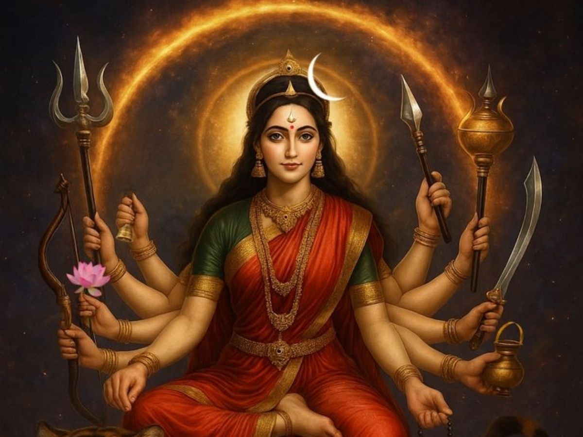 मां चंद्रघंटा के दस हाथ हैं, जिनमें अलग-अलग शस्त्र है और साथ ही कमल-संकल्प धारण हैं. मां चंद्रघंटा यह रूप सिंह पर सवार है, जो असुरों का संहार करता है. सिंह का प्रतीक ही भय पर विजय और साहस है. शिवपुराण और देवीभागवत में बताया गया है कि देवी मां चंद्रघंटा का घंटा ऐसा दिव्य अस्त्र है, जिसकी ध्वनि तीनों लोकों को भय मुक्त करती है, क्योंकि घंटे की ध्वनि सिर्फ धार्मिक आस्था का प्रतीक नहीं होती, बल्कि इससे एक वैज्ञानिक कंपन भी उत्पन्न करती है आईये जानते हैं यहां