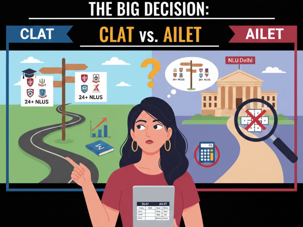 CLAT Vs AILET: भारत में वकालत की पढ़ाई का सपना देखने वाले हज़ारों छात्रों के मन में सबसे पहला और सबसे बड़ा सवाल यही उठता है CLAT या AILET? दोनों ही परीक्षाएं सम्मानित हैं, दोनों में कड़ी मेहनत और समर्पण चाहिए, लेकिन इनकी राह और नतीजे एक-दूसरे से काफ़ी अलग हैं. ऐसे में सही परीक्षा का चुनाव सिर्फ़ एक फैसला नहीं, बल्कि आपके पूरे लॉ करियर की दिशा तय करने वाला कदम बन जाता है.
