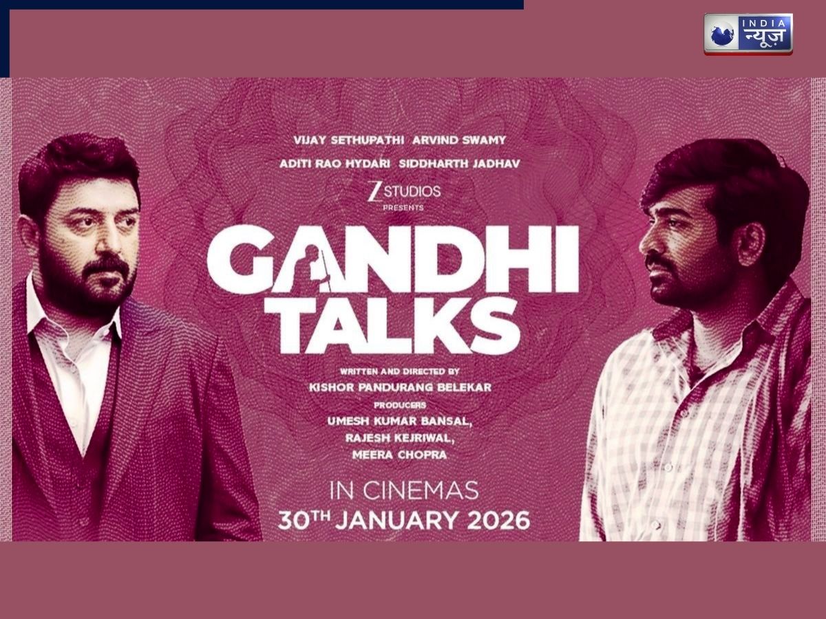 Gandhi Talks: दर्शकों के लिए अब इंतजार की घड़ी खत्म हो चुकी है और ‘गांधी टॉक्स’ की रिलीज डेट सामने आ गई है. जी स्टूडियोज ने अपनी महत्वाकांक्षी और अनोखी फिल्म ‘गांधी टॉक्स’ को लेकर जानकारी साझा करते हुए बताया कि फिल्म इसी साल रिलीज होगी. इस फिल्म में एक्टर विजय सेतुपति की दमदार एक्टिंग देखने को मिलेगी. फिल्म ‘गांधी टॉक्स’ 30 जनवरी को सिनेमाघरों में आएगी. यह मूवी आपके लिए मूक फिल्म का टच देगी. मतलब ‘गांधी टॉक्स’ एक साइलेंट फिल्म है, जिसमें कोई डायलॉग नहीं होगा. इस मूवी को हाव-भाव और भावनाओं के जरिए प्रस्तुत किया जाएगा.