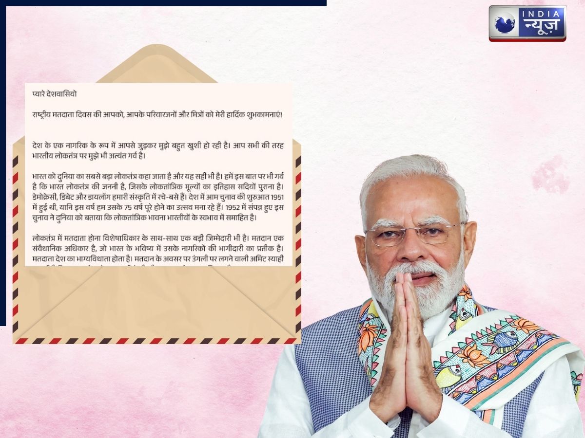 पीएम मोदी ने अपने लेटर में कहा, ‘प्यारे देशवासियो राष्ट्रीय मतदाता दिवस की आपको, आपके परिवारजनों और मित्रों को मेरी हार्दिक शुभकामनाएं!