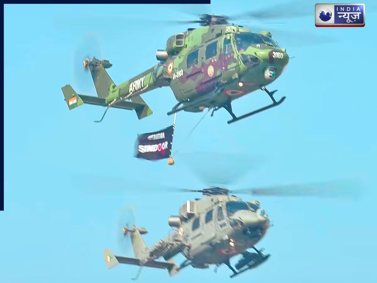 परेड की शुरुआत में कैप्टन विजय प्रताप के नेतृत्व में प्रहार फॉर्मेशन में फ्लाईपास्ट हुआ. इसमें ध्रुव एडवांस्ड लाइट हेलीकॉप्टर को लेफ्टिनेंट कर्नल अहमद पाशा ने उड़ाया. इस पर (ALH) भारतीय सेना के ऑपरेशन सिंदूर का ध्वज लगा हुआ था. इस फ्लाईपास्ट में इंडियन आर्मी के ALH डब्ल्यूएचआई और भारतीय वायुसेना के एएलएच मार्क-4 हेलीकॉप्टर ने भी हिस्सा लिया. बता दें कि कर्तव्य पथ उन हथियारों को भी प्रदर्शन के तौर पर दिखाया, जो ऑपरेशन सिंदूर के दौरान इस्तेमाल किए गए थे. एयर फोर्स के फाइटर जेट्स ने ऑपरेशन सिंदूर फॉर्मेशन बनाया.
