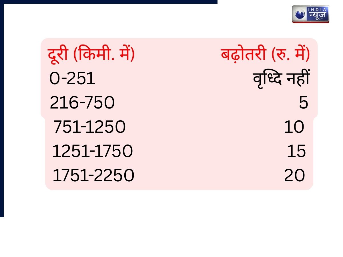 ऐसी है नई किराया सूची (द्वितीय श्रेणी साधारण)