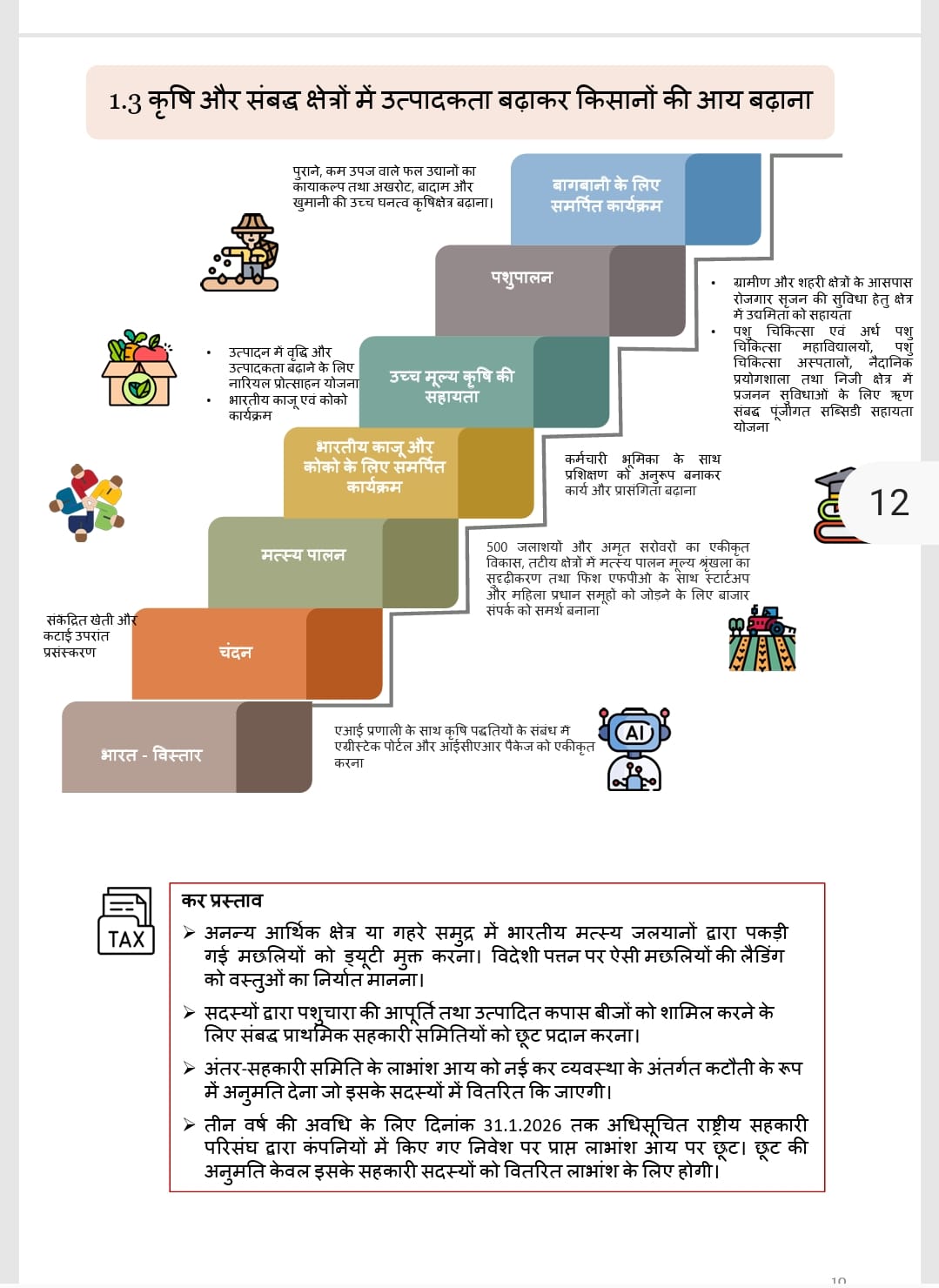 बजट का सबसे दिलचस्प हिस्सा ‘टैक्स प्रस्ताव’ हैं, जो सीधे तौर पर जेब को फायदा पहुँचाएंगे. किसानों को मछली पालन पर छूट दी गई है. अगर भारतीय जहाज गहरे समुद्र से मछली पकड़कर लाते हैं, तो उन्हें ड्यूटी नहीं देनी होगी. इसे ‘निर्यात’ की तरह माना जाएगा. सहकारी समितियों को फायदा: पशु चारा और कपास के बीज मुहैया कराने वाली समितियों को टैक्स में छूट दी गई है. राष्ट्रीय सहकारी महासंघ द्वारा किए गए निवेश पर मिलने वाले लाभ को 31 जनवरी 2026 तक टैक्स फ्री रखने का प्रस्ताव है, बशर्ते वह पैसा सदस्यों के काम आए. सीधे शब्दों में कहें तो, इस बार का बजट किसानों को केवल अन्नदाता नहीं बल्कि एक बिजनेसमैन बनाने की तरफ इशारा कर रहा है. जहां एक तरफ टेक्नोलॉजी से पैदावार बढ़ाने की बात है, वहीं दूसरी तरफ टैक्स में छूट देकर समितियों को मजबूत करने की कोशिश की गई है.