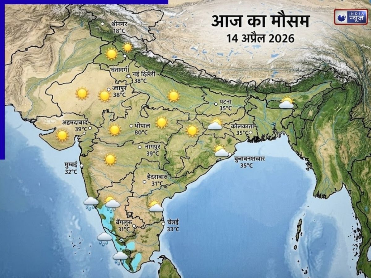Today Weather News 14 April 2026: जहां एक ओर दक्षिण भारत में प्री-मॉनसून एक्टिव हो चुका है और बारिश का सिलसिला शुरू है तो उत्तर भारत में गर्मी बढ़ने लगी है. उत्तर-पूर्वी पर्वतीय क्षेत्रों में बारिश तो महाराष्ट्र, गुजरात और राजस्थान में भीषण गर्मी लोगों की परेशानी बढ़ाने वाली है. आने वाले दिनों में इन राज्यों में तेज धूप के साथ लू चलने की संभावना मौसम विभाग की ओर से जताई गई है. कुल मिलाकर पूरे देश में मौसम का मिजाज बदल गया है. देशभर में सक्रिय मौसमी गतिविधियों के चलते कहीं बादल बरसेंगे तो कहीं गर्मी के साथ तपिश बढ़ेगी.