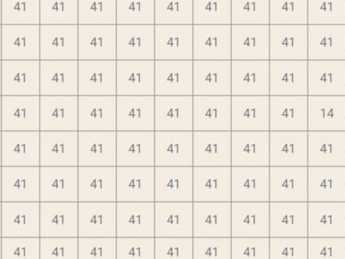 इस चैलेंज में आपको एक ऐसी तस्वीर दिखाई जाएगी, जिसमें हर तरफ सिर्फ ‘41’ ही ‘41’ लिखा नजर आएगा. कई लाइन और कॉलम में एक जैसे नंबर भरे हुए हैं. लेकिन इन्हीं के बीच कहीं बहुत चालाकी से ‘14’ छुपाया गया है. आपका टास्क है उस अलग नंबर को पहचानना.