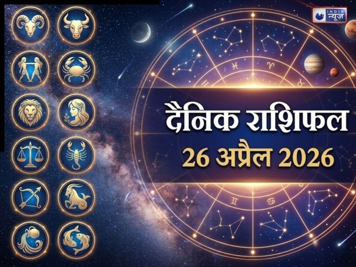 Kal Ka Rashifal 26 April 2026: कल का दिन कई राशियों के लिए नई उम्मीदें, सफलता और खुशियों के संकेत लेकर आ रहा है. कुछ लोगों को करियर, नौकरी और व्यापार में आगे बढ़ने के सुनहरे अवसर मिल सकते हैं, जबकि कुछ राशियों को परिवार का साथ और मानसिक शांति का सुख मिलेगा. कुल मिलाकर यह दिन समझदारी, मेहनत और सकारात्मक सोच रखने वालों के लिए लाभकारी साबित हो सकता है. आइए जानते हैं 26 अप्रैल 2026 के लिए सभी 12 राशियों का राशिफल.