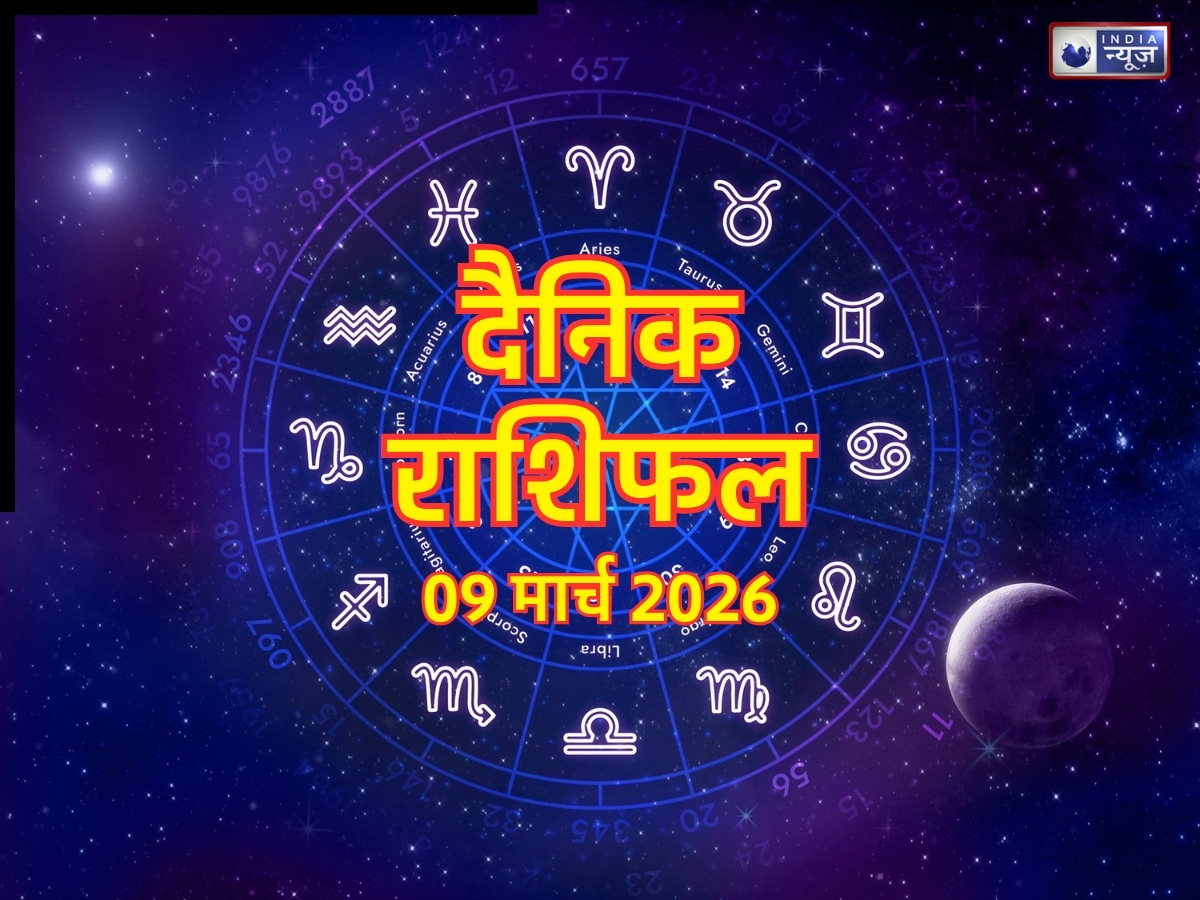 Aaj Ka Rashifal 9 March 2026: आज 9 मार्च सोमवार है. आज का दिन कौन सी रीशि के लिए होने वाला है लाभदायक, किस राशि के लोगों को होगा आज बड़ा धन लाभ , व्यापार के लिहाज से किस राशि के लोगों का दिन है अच्छा … आपना आज का राशिफल (Today Horoscope), जानना चाहते हैं, तो पढ़ें (Aries), वृषभ (Taurus), मिथुन (Gemini), कर्क (Cancer), सिंह (Leo), कन्या (Virgo), तुला (Libra), वृश्चिक (Scorpio), धनु (Sagittarius), मकर (Capricorn), कुंभ (Aquarius), और मीन (Pisces) तक का दैनिक राशिफल.