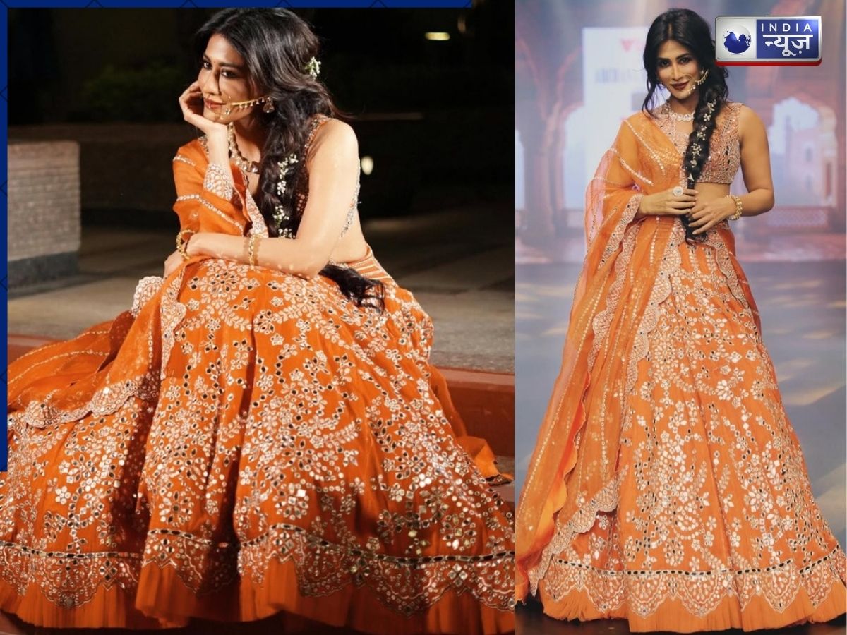 इन तस्वीरों में, चित्रांगदा बेहद स्टाइलिश लग रही हैं और उनमें एक शाही अंदाज़ झलक रहा है. अपने रैंप वॉक के लिए, उन्होंने एक नारंगी रंग का लहंगा पहना था, जिस पर बारीक और भारी कढ़ाई की गई थी.