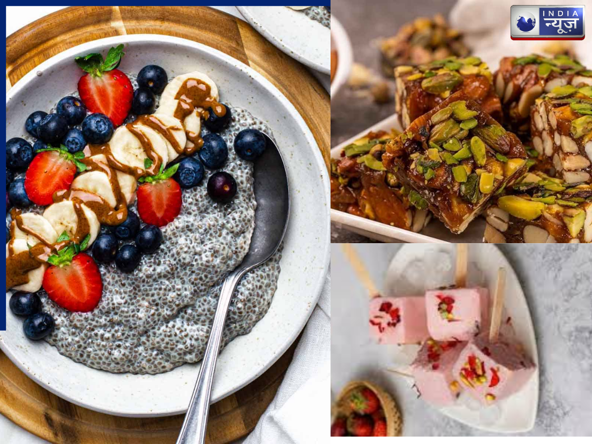 दूध या कोकोनट मिल्क में चिया सीड्स, शहद और वनीला एसेंस मिलाकर रात भर रखें. ऊपर से फल और ड्राई फ्रूट्स डालें; ओमेगा-3 से भरपूर यह सुपरफूड डेजर्ट का हेल्दी ऑप्शन है.