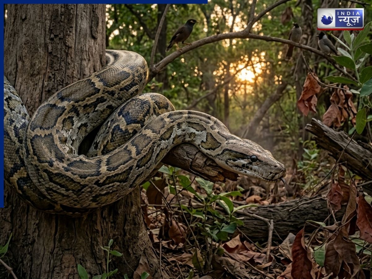 इंडियन रॉक पाइथन' (भारतीय रॉक अजगर) भारत के जंगलों का मूल निवासी, यह विशाल अजगर अपनी त्वचा पर बने भूरे रंग के विशिष्ट निशानों से पहचाना जाता है और इसकी लंबाई 25 फीट तक हो सकती है. इसका शरीर असाधारण रूप से मोटा, मज़बूत और शक्तिशाली होता है. यह भारत का सबसे बड़ा बिना जहर वाला सांप माना जाता है.