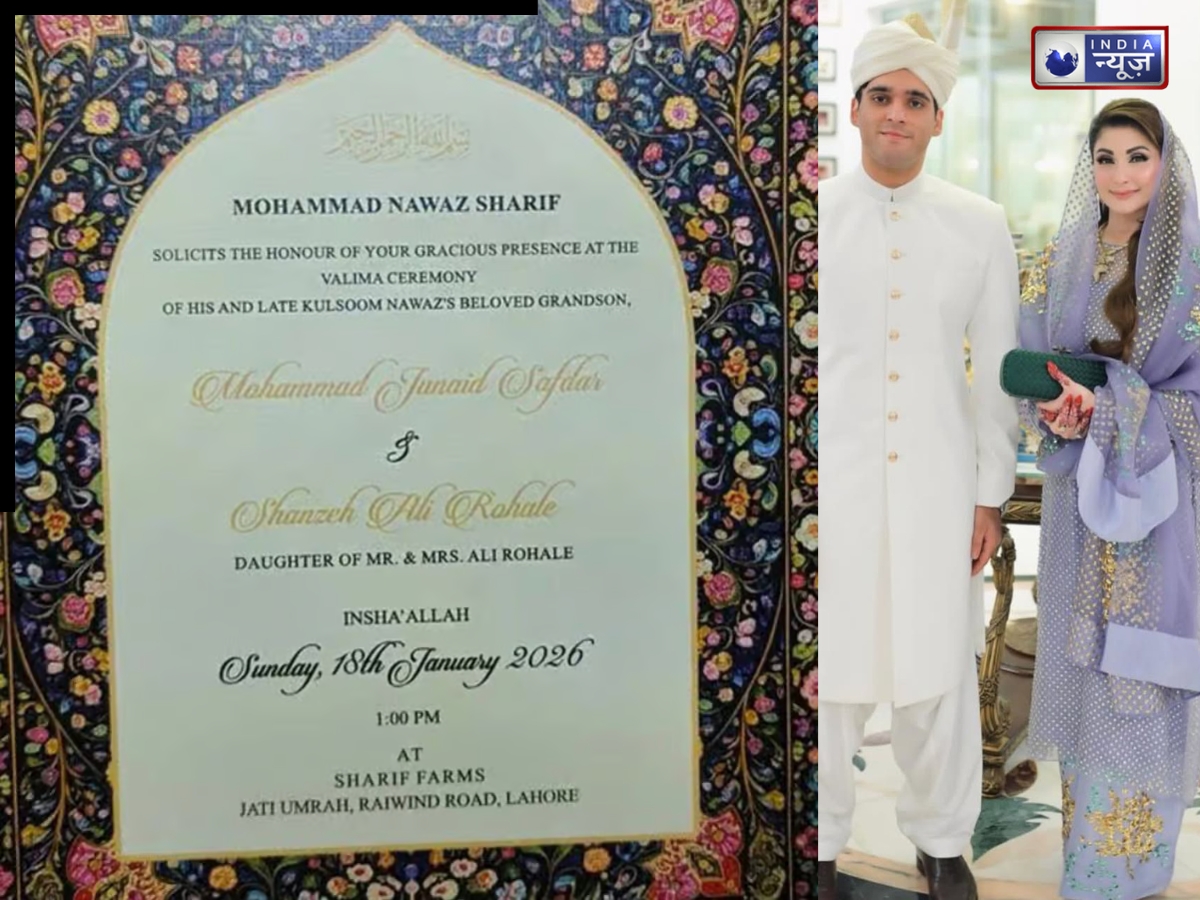 Junaid Safdar Wedding Cards:पंजाब की मुख्यमंत्री मरियम नवाज़ के बेटे और पूर्व प्रधानमंत्री नवाज़ शरीफ़ के पोते जुनैद सफ़दर का एक शादी का कार्ड सोशल मीडिया पर वायरल हो गया है, जिससे उनकी होने वाली दूसरी शादी को लेकर काफ़ी चर्चा हो रही है.