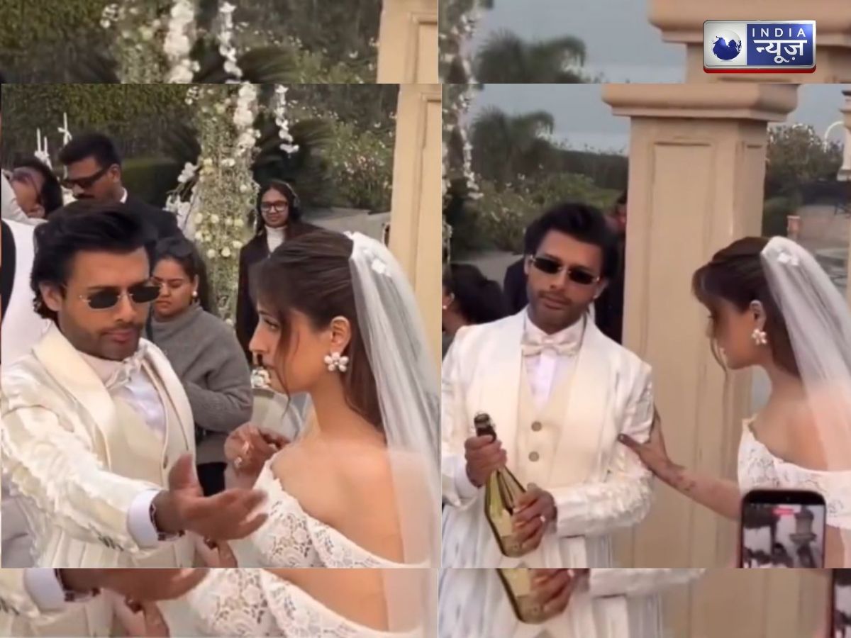 Nupur Sanon and Stebin Ben Marriage: सिंगर स्टेबिन बेन और एक्टर-मॉडल नुपुर सेनन ने अपने रिश्ते को ऑफिशियल कर दिया है. इस कपल ने उदयपुर में शादी कर ली है और एक शानदार क्रिश्चियन सेरेमनी में एक-दूसरे का जिंदगी भर के लिए हाथ थामा. शादी की तस्वीरें और वीडियोज भी ऑनलाइन सामने आए हैं. शादी के दौरान स्टेबिन और नुपुर दोनों सफेद रंग के कपड़ों में नजर आए. नुपुर सफेद ऑफ शोल्डर गाउन में बला की खूबसूरत लग रही थीं. उनकी हाथों में मेंहंदी भी लगी थी. वहीं दूल्हे ने शैपेंन की बोतल खोली.