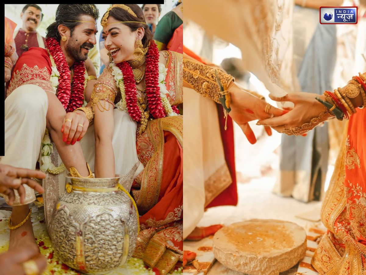 Rashmika Viijay Wedding: रश्मिका मंदाना और विजय देवरकोंडा ने 26 फरवरी को उदयपुर में धूमधाम से शादी की. दोनों ने साउथ इंडियन रीति-रिवाज से अपने करीबियों की मौजूदगी में अपनी नई जिंदगी की शुरुआत की. इनकी कुछ तस्वीरें भी सोशल मीडिया पर सामने आई हैं. शादी की तस्वीरों के साथ ही कपल ने एक दूसरे के लिए प्यार भरे संदेशा लिखा. इन नोट्स ने फैंस का दिल जीता. वहीं तस्वीरें देख लोग मंत्रमुग्ध हो गए. हर तरफ कपल की शादी की चर्चा हो रही है. लोग तेजी से इनकी तस्वीरों को शेयर कर रहे हैं. हालांकि इस आर्टिकल में हम आपको तस्वीरों में बहुत सी बारीकी वाली चीजें बताने जा रहे हैं, जो शायद आपने मिस कर दी हों.