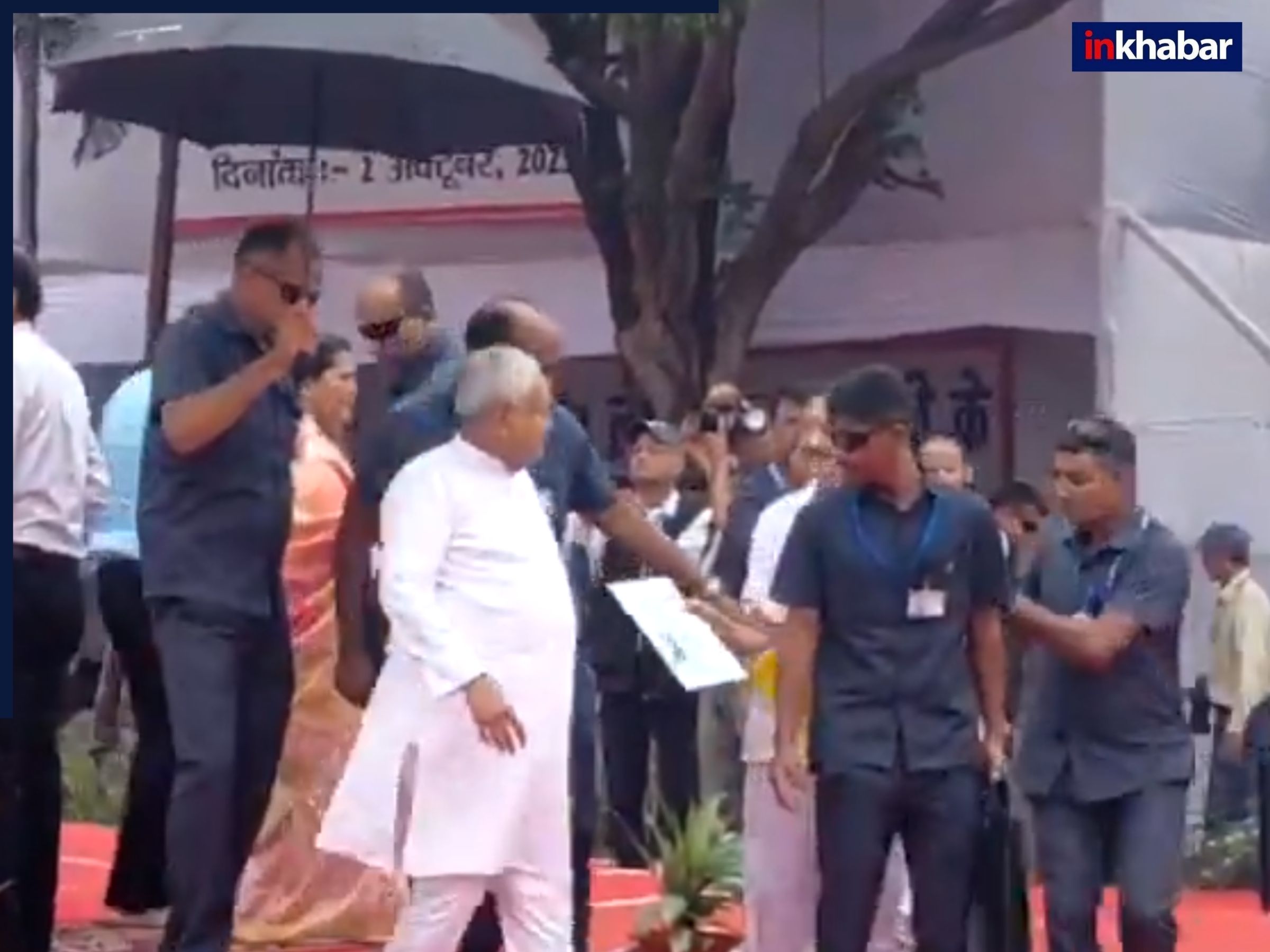 Bihar News: गुरुवार को जब मुख्यमंत्री नीतीश कुमार लाल बहादुर शास्त्री को श्रद्धांजलि अर्पित करने के बाद मंच से नीचे उतर रहे थे. तभी एकाएक एक व्यक्ति वहां पीला कागज लेकर पहुंच गया और उसके बाद तत्काल सुरक्षा कर्मी ने उन्हें पकड़ने की कोशिश की. मुख्यमंत्री एक पल के लिए अचंभित रह गए.