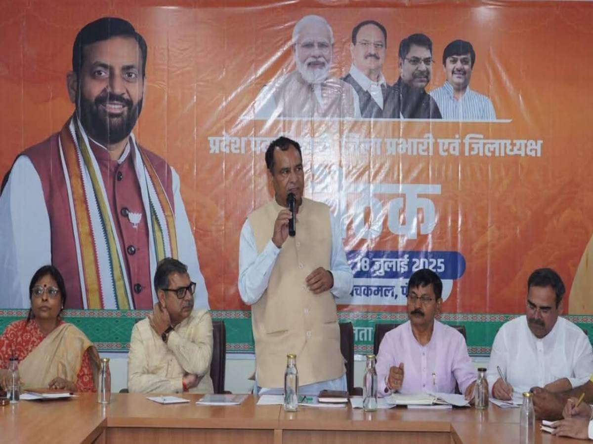 India News (इंडिया न्यूज), BJP Haryana : भाजपा की शुक्रवार को पंचकूला में अहम संगठनात्मक बैठक हुई। सबसे पहले सीएम आवास में छोटी टोली और उसके बाद पंचकूला स्थित पार्टी प्रदेश कार्यालय पंचकमल में प्रदेश पदाधिकारियों के साथ बैठक हुई। इन बैठकों में मुख्यमंत्री नायब सिंह सैनी, प्रदेश प्रभारी डा. सतीश पूनिया, प्रदेश अध्यक्ष मोहन लाल बड़ौली, संगठन मंत्री फणीन्द्रनाथ शर्मा, प्रदेश महामंत्री डा. अर्चना गुप्ता, प्रदेश महामंत्री सुरेंद्र पूनिया मौजूद रहे। मुख्यमंत्री, प्रदेश प्रभारी, प्रदेश अध्यक्ष ने ‘‘मन की बात’’ कार्यक्रम में हरियाणा का देश में अव्वल रहने पर कार्यकर्ताओं की पीठ थपथपाई और आगामी कार्यक्रमों के लिए जरूरी दिशा निर्देश दिए।