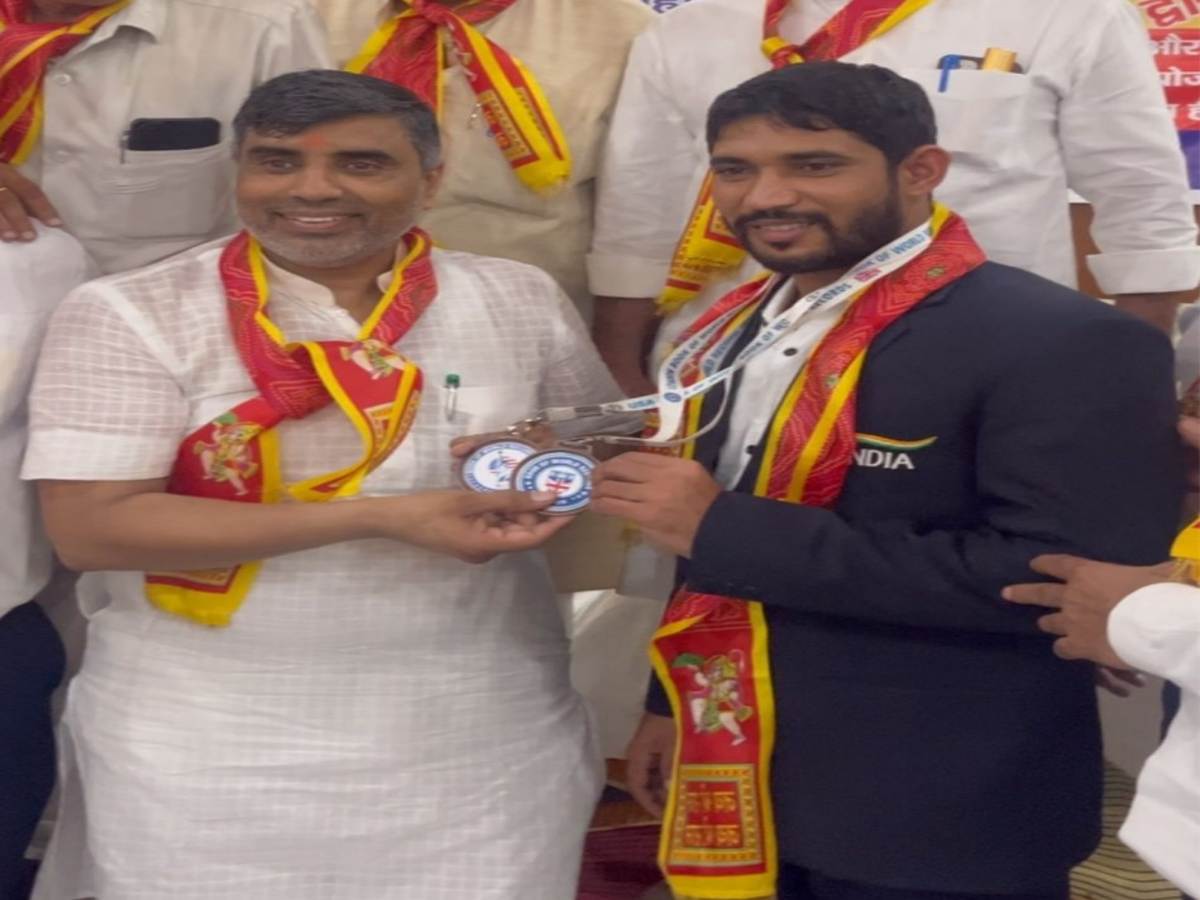 India News (इंडिया न्यूज), Education Minister Honored Sandeep Jangra : हरियाणा के शिक्षा मंत्री महिपाल ढांडा ने खुशी गार्डन में 20 हजार लगातार सूर्य नमस्कार का वर्ल्ड रिकॉर्ड बनाने पर संदीप आर्य जांगड़ा को एक कार्यक्रम में सम्मानित किया व बधाई दी। विदित रहे कि हरियाणा के अंतरराष्ट्रीय खिलाड़ी संदीप जांगड़ा ने गुजरात के मोढेरा में आयोजित सूर्य नमस्कार चैंपियनशिप में 37 घंटे लगातार 20,000 लगातार सूर्य नमस्कार का 6 बार वल्र्ड रिकॉर्ड बनाया।