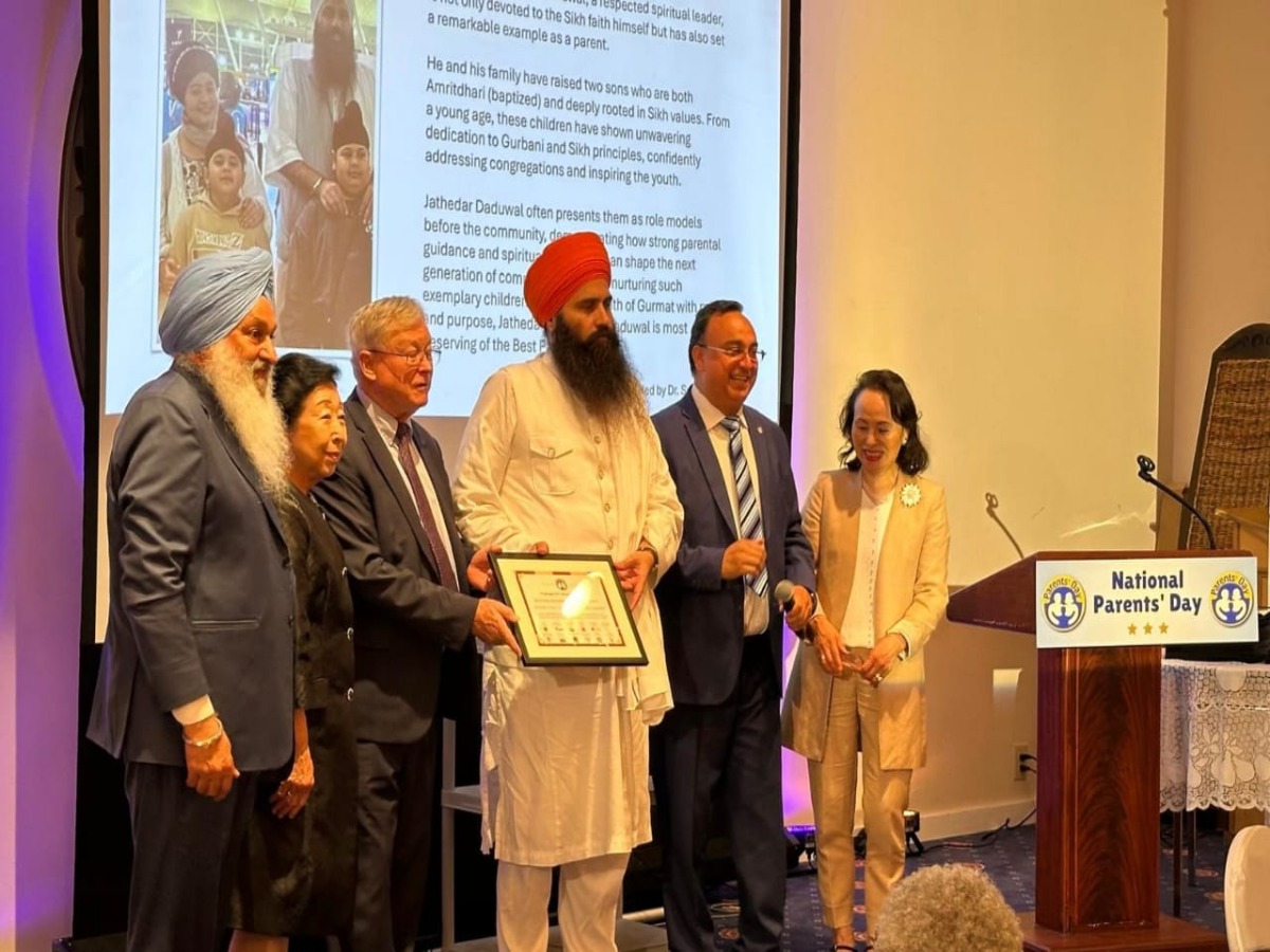 प्रवीण वालिया-करनाल, India News (इंडिया न्यूज), Jathedar Baljit Singh Daduwal Honoured With Best Parents Award : यूएनओ से मान्यता प्राप्त संगठन यूनिवर्सल पीस फेडरेशन द्वारा नेशनल पेरेंट्स डे पर अमेरिका की राजधानी वाशिंगटन डीसी स्थित प्रतिष्ठित ‘द वाशिंगटन टाइम्स’ भवन में एक भव्य अंतर्राष्ट्रीय कार्यक्रम का आयोजन किया गया। इस विशेष आयोजन में विभिन्न देशों से सिलेक्ट किए 21 प्रतिनिधि पैरेंट्स को सम्मानित किया गया। इस अवसर पर धर्म प्रचार हरियाणा सिख गुरुद्वारा प्रबंधक कमेटी के अध्यक्ष व शिरोमणि अकाली दल (आज़ाद) के अध्यक्ष जत्थेदार बलजीत सिंह दादूवाल एम्बेसडर फॉर पीस को सिख धर्म तथा भारत के प्रतिनिधि के रूप में विशेष सम्मान प्रदान किया गया।