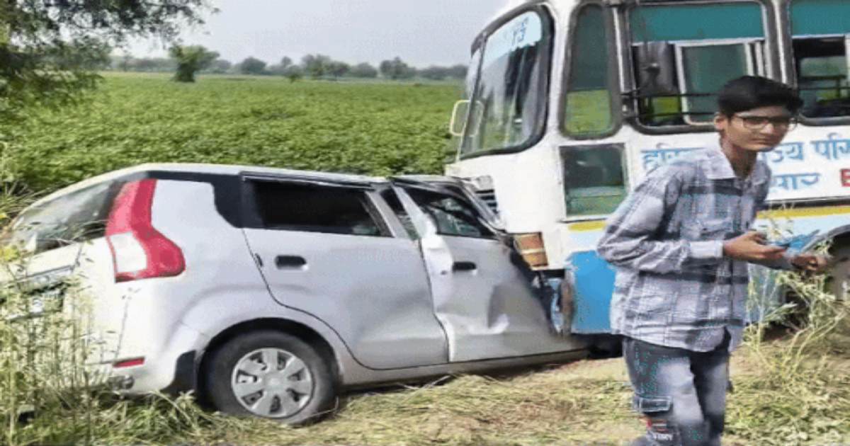सूत्रों के मुताबिक बस राजस्थान के हनुमानगढ़ जिले के भादरा से हिसार की तरफ आ रही थी, तभी बस के साथ वैगनआर कार की टक्कर हो गई, टक्कर होते ही कार के एयरबैग खुल गए और कार चालक सहित कार सवार घायल हो गए, तुरंत मौके पर एंबुलेंस बुलाई गई और घायलों को हिसार के एक निजी अस्पताल में भर्ती कराया गया। बताया जा रहा है कि कार चालक गंभीर रूप से घायल है, जबकि उसे अन्य दो साथियों को मामूली चोटें आई हैं।