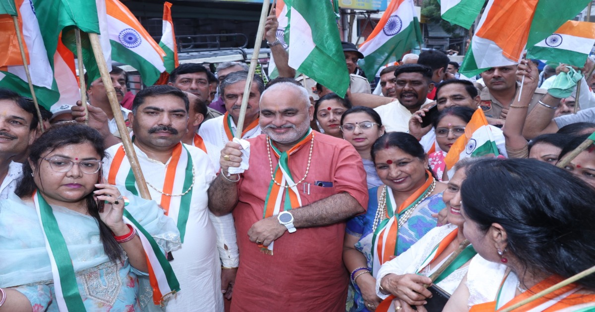 यात्रा हर भारतीय के दिल में राष्ट्रीय ध्वज के प्रति समर्पण, देशभक्ति व सद्भावना को उजागर करता है। उन्होंने कहा कि तिरंगा यात्रा-2025 में बढ़-चढक़र हिस्सा लें। अपनी सेल्फी लें और उसे हर-घर तिरंगा की वेबसाइट पर अपलोड भी करें। कांग्रेस पर तंज कसते हुए विधायक ने कहा कि आज पूरा देश आजादी का पर्व मना रहा है । तो वहीं कांग्रेस प्रदर्शन कर रही है । उन्होंने कहा कि राहुल गांधी प्रियंका गांधी और दीपेंद्र हुड्डा भी इस इलेक्शन कमिशन की वोटर लिस्ट से जीत कर आए हैं आज बे बुनियाद सवाल खड़े कर रहे हैं यही कारण है कि देशभर में कांग्रेस सत्ता से बाहर होती जा रही है।