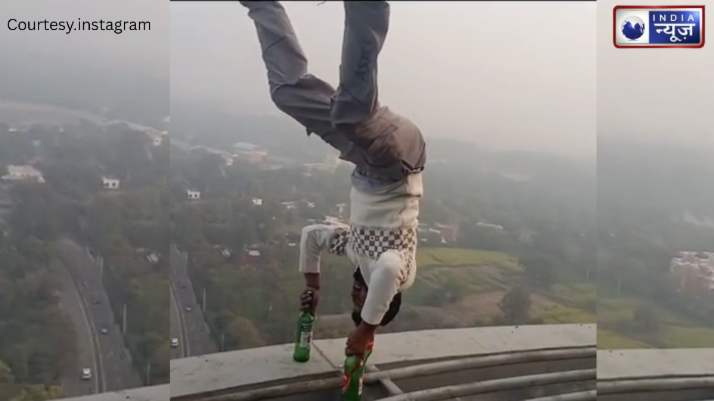 Hisar Tower Stunt: हरियाणा के हिसार में एक युवक ने शहर के सबसे ऊंचे टावर पर चढ़कर सबको हैरान कर दिया, युवक टावर के बिल्कुल ऊपरी हिस्से यानी कोने (Corner) पर खड़ा होकर बोतलों के साथ खतरनाक स्टंट करने लगा, उसे इतनी ऊंचाई पर बिना किसी सुरक्षा घेरे के करतब दिखाते देख खड़े लोगों की सांसें अटक गईं, देखते ही देखते वहां लोगों की भारी भीड़ जमा हो गई और लोग अपने मोबाइल में यह मंजर कैद करने लगे, युवक टावर की रैलिंग और किनारों पर बड़े ही जोखिम भरे तरीके से संतुलन बना रहा था.